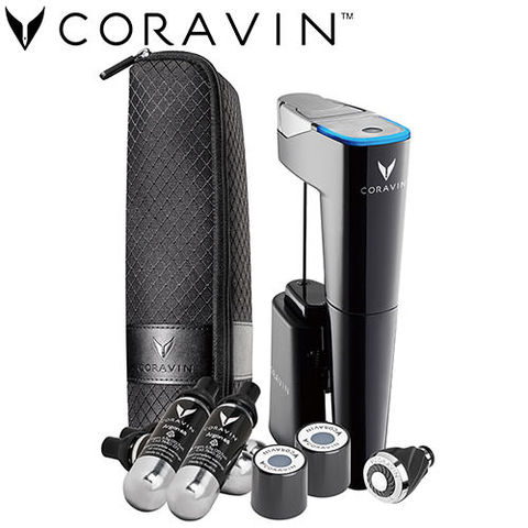 CORAVINモデル11 (専用ニードル込)、ガスカプセル (圧縮アルゴンガス)×4本、スクリューキャップ×2個、エアレーター1個、キャリーケース、取扱説明書、1年間保証書