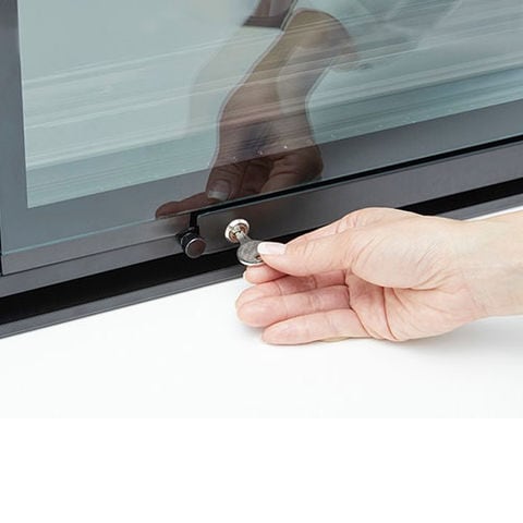 ※扉下のレールを右にスライドし鍵を掛けます。