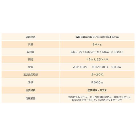 ワインセラー 【代引不可】ワインショーケース【最大22本収納】 SCS88C