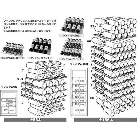 プレミアム60は、【2台重ね置きができる】希少な機種です。セラー本体とワインボトルをすべて詰め総重量100?を超えてもビクともしない、厚い天板と頑丈な造りをしています。幅の狭い場所では重ね置きしたり、高さ90cmも満たないカウンター下に設置するなど、スペースを有効活用できます。