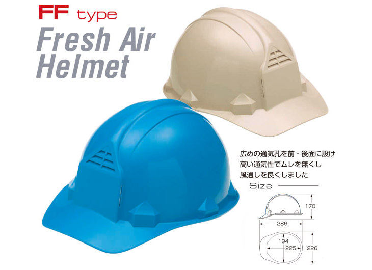 ヘルメット【作業用・工事用】KAGA カガ 加賀産業 FF-1F ABS製 通気孔付き 雨だれ防止溝付 簡単サイズ調整 アメリカンタイプ ひさし付き 国家検定合格品 国産 安心安全