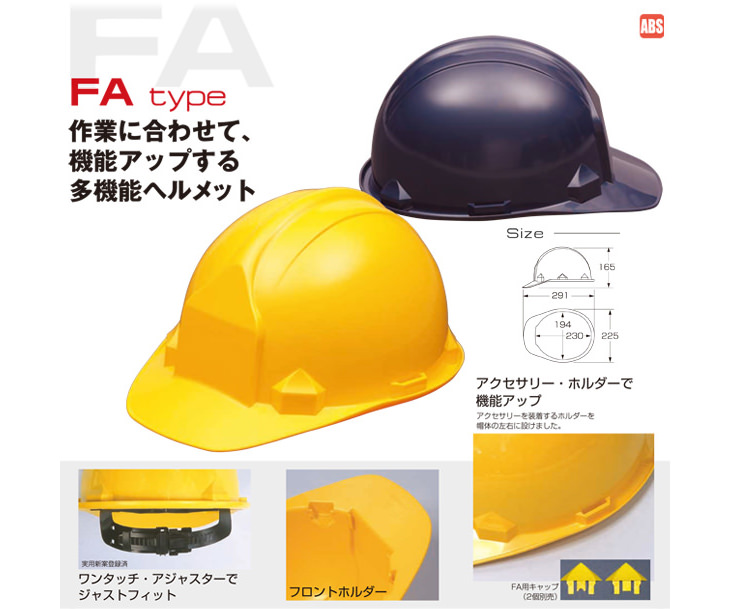 ヘルメット【作業用・工事用・電気用】KAGA カガ 加賀産業 FA-3 ABS製 軽い軽量 雨だれ防止溝付 簡単サイズ調整 アメリカンタイプ ひさし付き 国家検定合格品 国産 安心安全