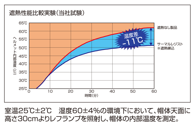 | 遮熱顔料を帽体に練り込んでいるので、帽体のキズや塗装のはがれによる遮熱性能の低下はありません。 パッドつき |