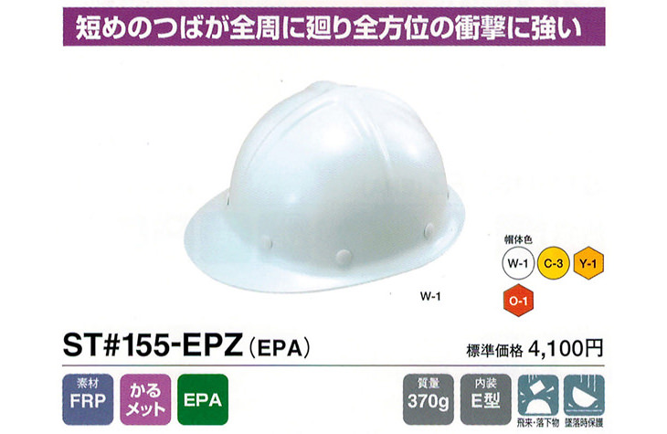 ヘルメット【作業用・工事用】谷沢製作所 谷沢製作所 ST#155-EPZ FRP FRP製 軽い軽量かるメット・かるめっと 耐熱・対候性 簡単サイズ調整 ひさし付き キャップタイプ 国家検定合格品 国産 安心安全