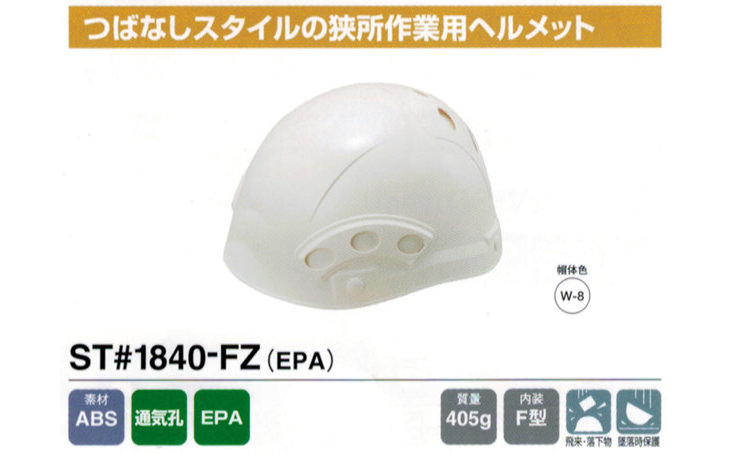 ヘルメット【狭所作業用作業用・工事用】谷沢製作所 谷沢製作所 ST#1840-FZ ABS製 通気孔付き 簡単サイズ調整 国家検定合格品 国産 安心安全
