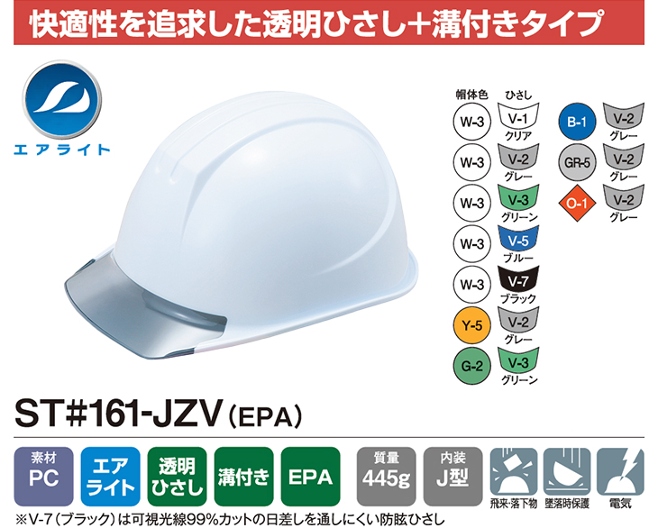 エアライト内装【作業用・工事・電気用ヘルメット】谷沢製作所 タニザワ ST#161-JZV 蜂の巣ヘルメット TANIZAWA 発泡スチロールなし PC製 アメリカン 透明ひさし付き クリアバイザー 簡単サイズ調整 雨だれ防止溝付 飛来落下物 墜落時保護