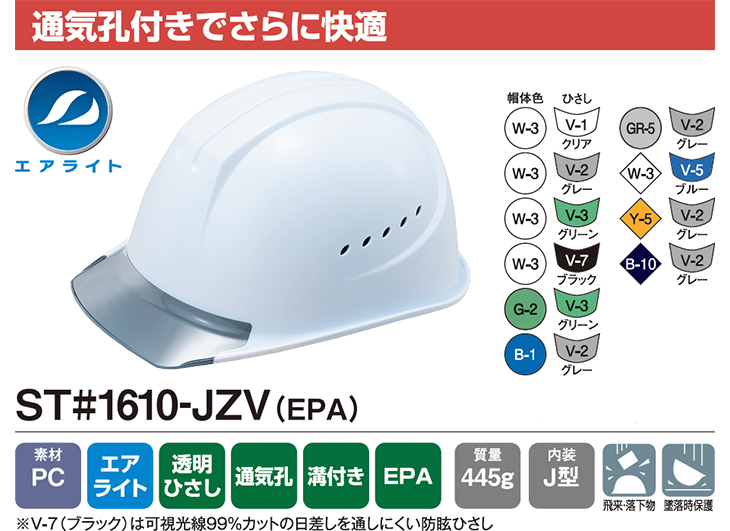 エアライト内装【作業用・工事用ヘルメット】谷沢製作所 タニザワ ST#1610-JZV 蜂の巣ヘルメット TANIZAWA 発泡スチロールなし PC製 アメリカン 透明ひさし付き クリアバイザー 簡単サイズ調整 通気孔付き 雨だれ防止溝付 飛来落下物 墜