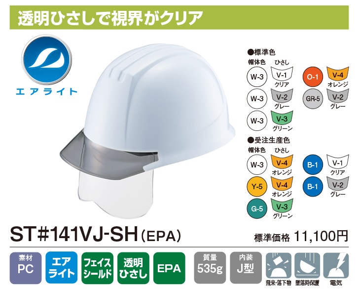エアライト内装【作業用・工事・電気用ヘルメット】谷沢製作所 タニザワ ST#141VJ-SH 蜂の巣ヘルメット TANIZAWA 発泡スチロールなし PC製 アメリカン 透明ひさし付き クリアバイザー 簡単サイズ調整 飛来落下物 墜落時保護 建設土木 安