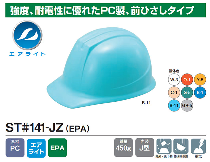 エアライト内装【作業用・工事・電気用ヘルメット】谷沢製作所 タニザワ ST#141-JZ 蜂の巣ヘルメット TANIZAWA 発泡スチロールなし PC製 アメリカン 簡単サイズ調整 飛来落下物 墜落時保護 建設土木 安心安全 日本製 国産