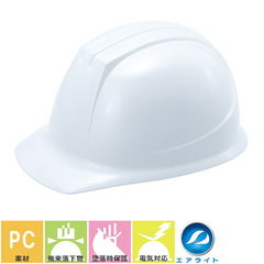 | 雨垂れ防止溝、電気対応ヘルメット |