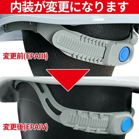 | エアライト搭載ヘルメットのヘッドバンドEPAにつきましては、現行の「EPA3」付きの在庫品がなくなり次第、順次「EPA4」付きの新型へ切替となります。 新型EPA4は、EPA3に比べて13g軽量化すると共に、ヘッドバンドの形状変更により頭部へのより高いフィット性を実現しました。 さらに、使用可能な最大頭囲が1cm大きくなっております。(調節幅53~63cm) |