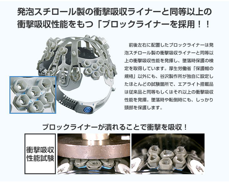 | ・通気孔+エアライトで抜群の通気性 前面に開けた通気孔で帽体内部に効率良く風を取り込み、エアライトによって広がった帽体内部の空間を風が通り抜けます。 ・ワイドシールドで目をしっかりガード 沿面寸法258mmのワイドなシールド面採用で、側面からの飛来物に対しても目をしっかりと守ります。 ・シールド面の交換も簡単 あごひもや内装を取り外さずに、シールド面のみの交換が可能。必要最低限のパーツ交換ができる、エコ設計です。 ・発泡スチロール製の衝撃吸収ライナーと同等以上の性能を持つ「ブロックライナー」搭載 ・内装交換がラクラク「グリップアップ機構」搭載 内装のくびれ部分に指を沿わせて握り、引き上げることで簡単に内装を取り外せます。 |
