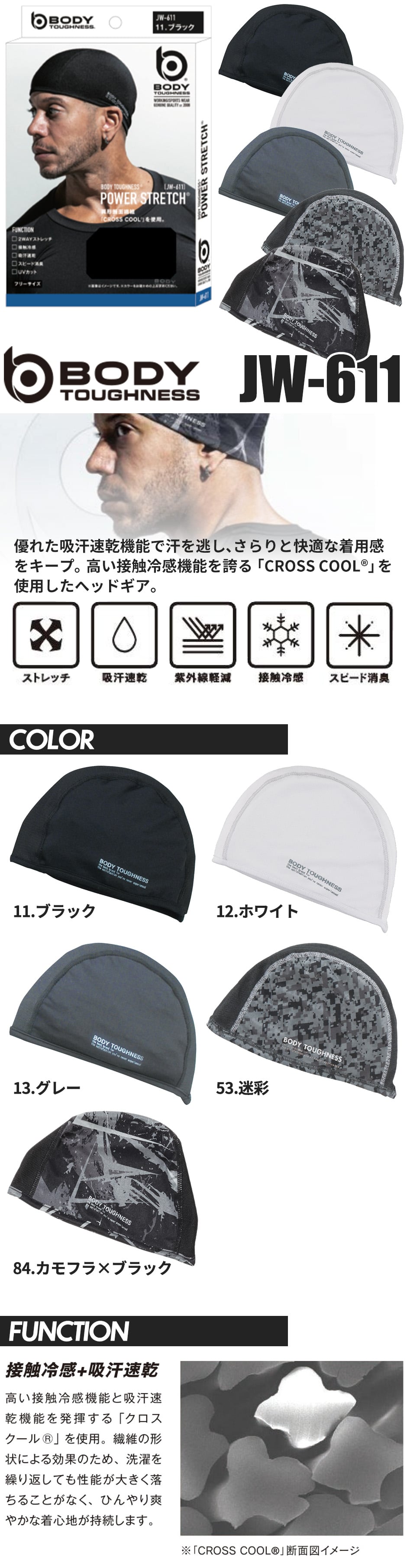 【メール便対応】おたふく手袋 夏用インナー インナーキャップ ヘルメット 吸汗 速乾 インナー ゴルフ 冷感インナー ヘッドキャップ キャップ 消臭 暑さ対策 接触冷感 ストレッチ UVカット 作業着 作業服 自転車 アウトドア バイク 汗止め ボディータフネス JW-611