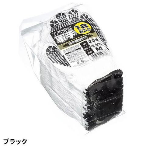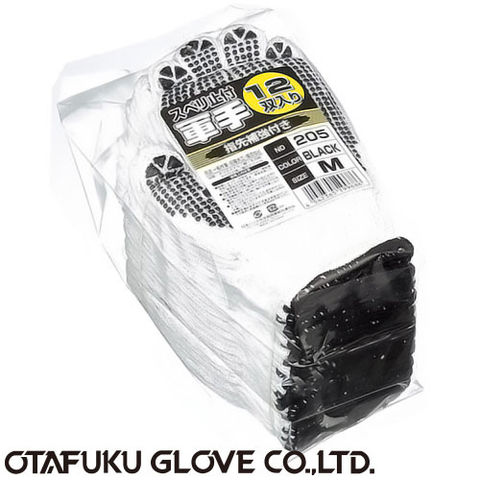 【滑り止め軍手】スベリ止手袋(軍手) [12双入] ブラック 品番:205 (M・L・LLサイズ) おたふく手袋 (作業用手袋) 小ロット軍手 7ゲージ(厚手) 混紡軍手 すべり止め 滑り止め軍手 柔らかい 吸湿性 乾きやすい しわになりにく