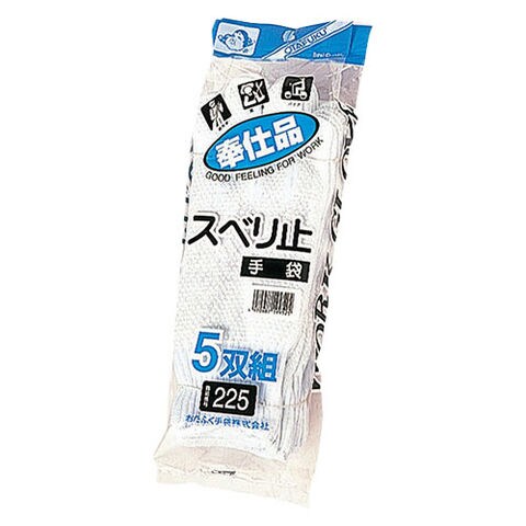 【滑り止め軍手】奉仕品ドライブスベリ止手袋 5双入×5セット[総数25双] 品番:225 おたふく手袋 (作業用手袋) 10ゲージ(薄手) 純綿軍手 すべり止め 丈夫 吸汗性 ハイキング 肌にやさしい