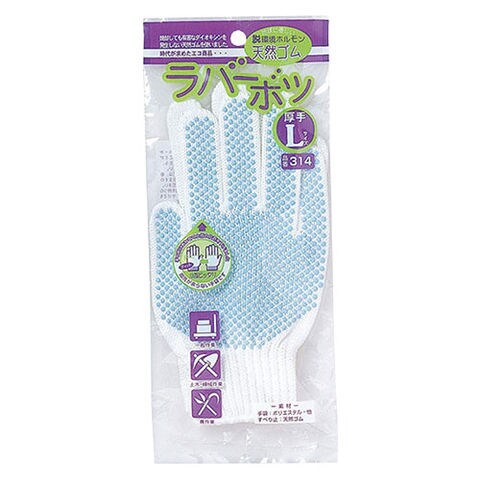【滑り止め軍手】ラバーボツ スベリ止手袋厚手[10双入] 品番:314 (M・Lサイズ) おたふく手袋 (作業用手袋) 7ゲージ(厚手) 化学繊維 すべり止め 天然ゴム 小ロット軍手 耐熱性 耐侯性 耐洗濯