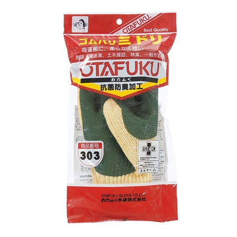 【ゴム張り手袋】背抜き手袋 ゴムバリミドリ[5双入] 品番:303 おたふく手袋 (作業用手袋) 背抜き 小ロット軍手 厚手 7ゲージ グリップ力 やわらかい フィットしやすい 低温でも硬くなりにくいグリップ力 天然ゴム ゴム張り軍