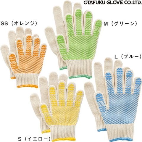 おたふく手袋 こどもてぶくろ スベリ止め付 10双 G-638 滑り止め軍手(ビニボツ) 純綿 薄手