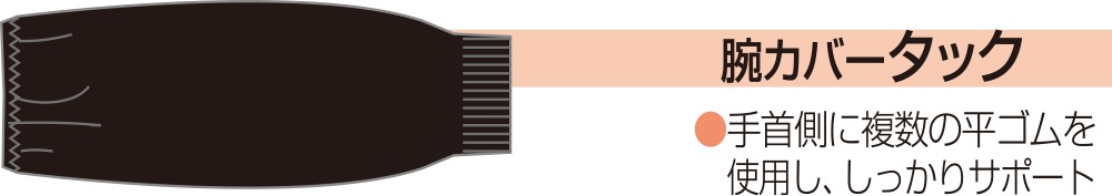 手首側に複数の平ゴムを使用し、袖口をしっかりガード