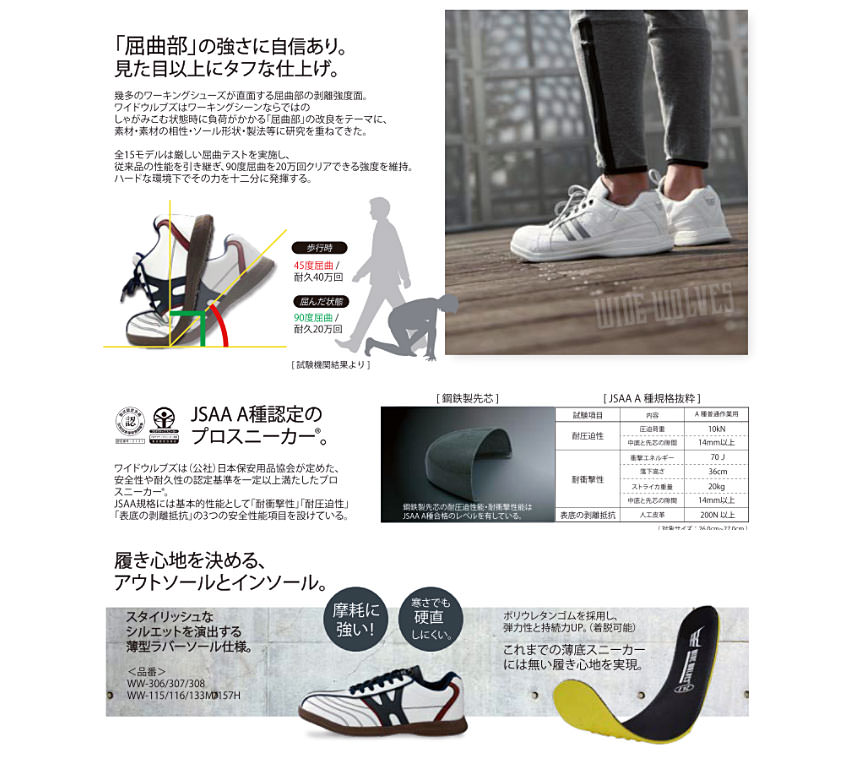 安全靴 おたふく手袋 ワイドウルブズ ローカット ベルトタイプ WW-133M マジックテープ JSAA規格 プロテクティブスニーカー