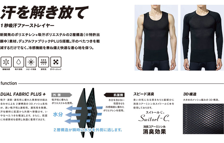 汗を解き放て!1秒吸汗ファーストレイヤー
