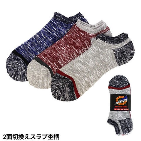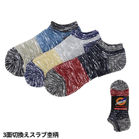 先丸 3足組 ショートソックス おたふく手袋 靴下 ソックス 25~27cm S-426 S-427 S-428 春 夏 夏用 安全靴 現場 作業着 作業服 作業用品 涼しい スラブ杢 単色 切換え