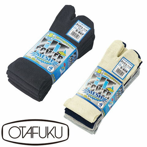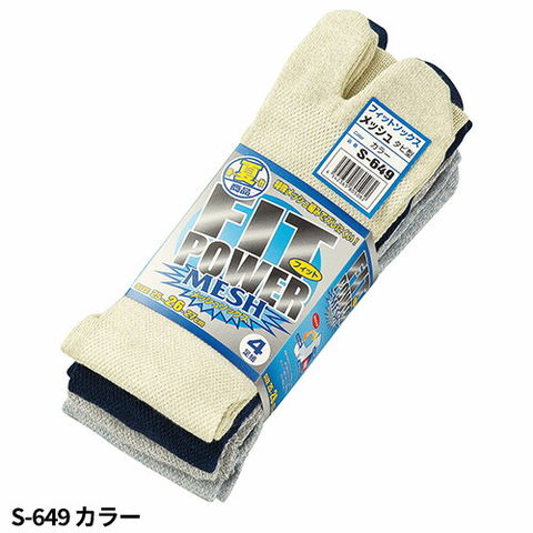 フィットパワー メッシュ ソックス タビ型 4足組 おたふく手袋 靴下 25~27cm S-647 S-649 春 夏 夏用 安全靴 現場 作業着 作業服 作業用品 涼しい