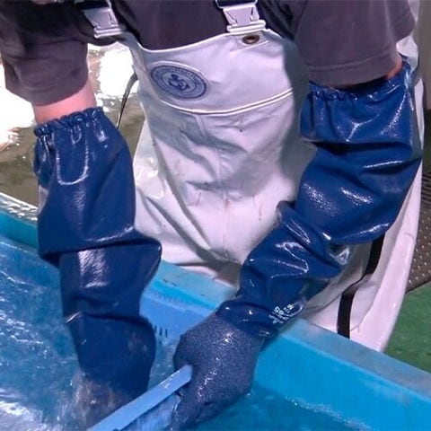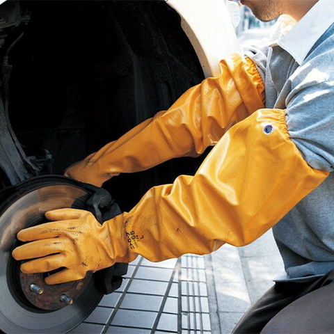 | ● 傷つきやすい指先および親指と人差指の指股部分は、特殊設計により強化しています。 ● 指先から肩口まで継ぎ目のない一体型で腕全体を保護します。 ● 一体型なので、手袋と腕カバーの接合部分から破れてしまう心配がなく、上腕部分まで丈夫です。 ● 傷つきやすい指先は、4重にコーティングし、強化しています。 ● 裾部分はズリ落ちを防止するゴムバンド付きです。 ● ニトリルゴムをコーティングしているため、油に強く、摩耗強度にも優れています。 ● 粒子付きの特殊加工により、高いスベリ止め効果を発揮します。 ● 裏布は、メリヤス編みの縫製手袋です。 ● 裏布には抗菌防臭加工を施しているため、繊維上の細菌の増殖を抑制し、汗などによる臭いの発生を抑えます。 | ||||||||||||||||||||