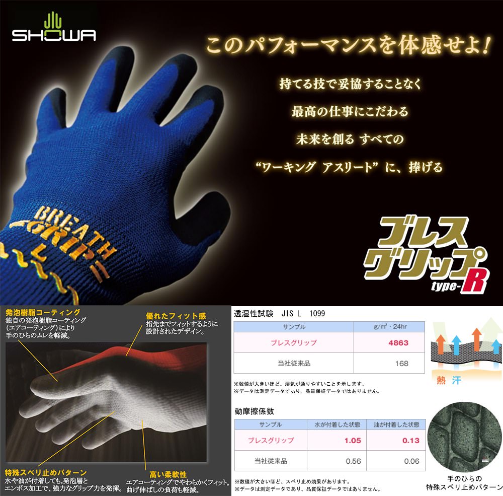 SHOWA ショーワグローブ ブレスグリップ type-R 10双 380R 背抜き手袋 ニトリルゴムコーティングのレビュー