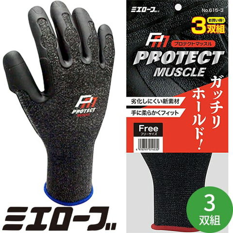 背抜き手袋 三重化学工業 プロテクトマッスル 3双セット 615-3 エラストマー