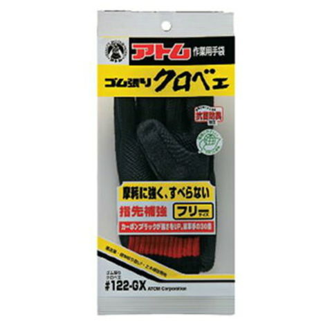 【ゴム張り軍手】ゴム張り クロベエ [5双入り] 品番:122-GX アトム ATOM 作業手袋 滑り止め 抗菌防臭 指先強化 7ゲージ(厚手) 2重張り 強力 クロベー 運輸 鉄筋 土木 建設 袋物取り扱い