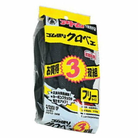 【ゴム張り軍手】ゴム張り クロベエ 3双組×5セット [総数双] 品番:122-GX-3P アトム ATOM 作業手袋 滑り止め 指先強化 抗菌防臭 7ゲージ(厚手) 運輸 鉄筋 土木 建設 袋物取り扱い