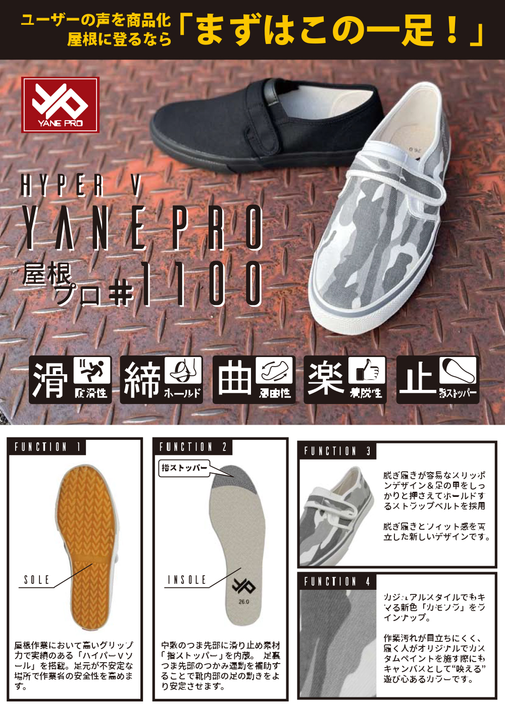 世界最高峰のグリップ力!!高所作業用ワークスニーカー ハイパーV屋根プロ#1100
