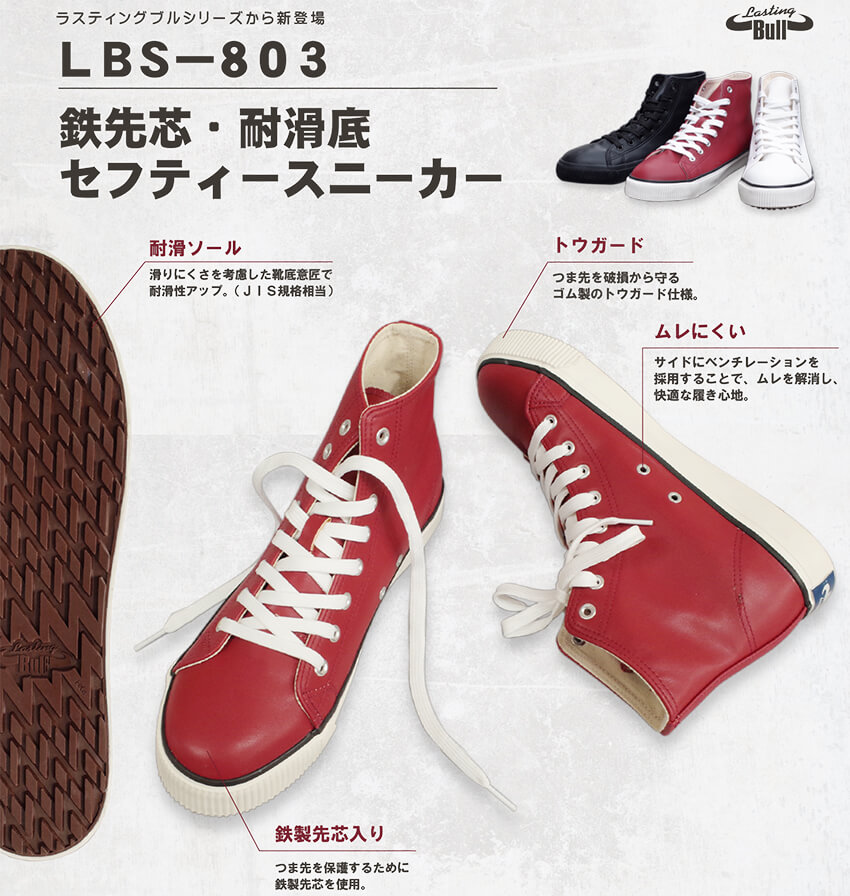 【数量限定大特価】安全靴 ハイカット メンズ レディース スニーカー 福山ゴム ラスティングブル LBS-803 紐靴 先芯あり おしゃれ 人気 格安 鉄製先芯 滑りにくい 衝撃吸収 カジュアル 通気性