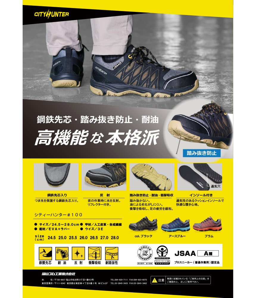 安全靴 福山ゴム シティーハンター100 EE701 紐靴 JSAA規格 プロテクティブスニーカー