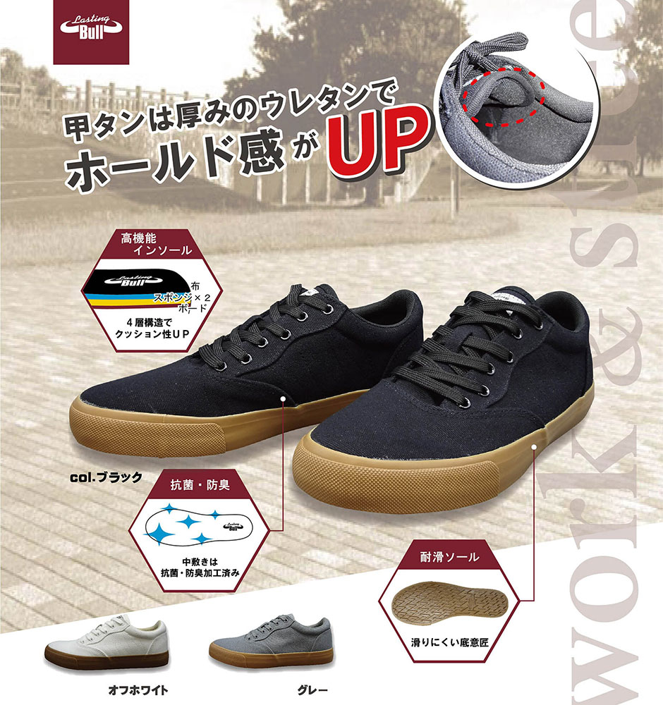 作業靴 紐靴 福山ゴム ラスティングブル LB-050 EE622 紐靴 先芯なし 滑りにくい 耐滑 綿100% カジュアル タウンユース カッコいい