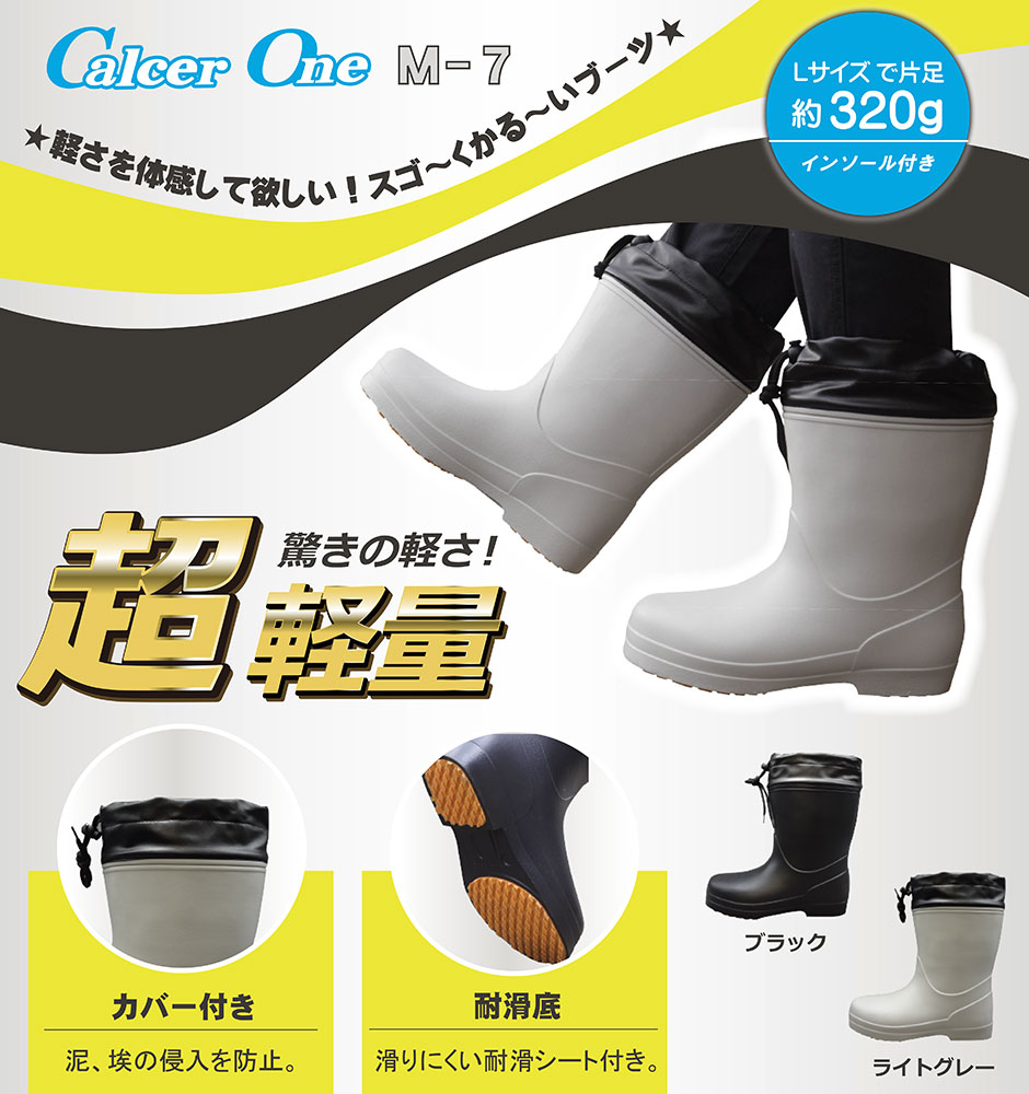 長靴 福山ゴム カルサーワン M-7 AA991 レインブーツ ショートタイプ 軽量 耐滑 滑りにくい カバー付き フード付き