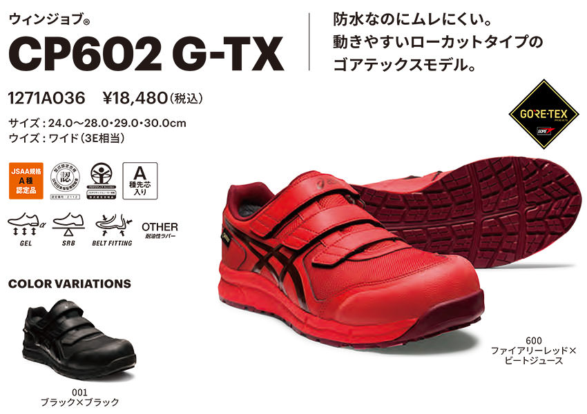 安全靴 asics アシックス WINJOB ウィンジョブ CP602 G-TX 1271A036 マジックテープ JSAA規格 プロテクティブスニーカー