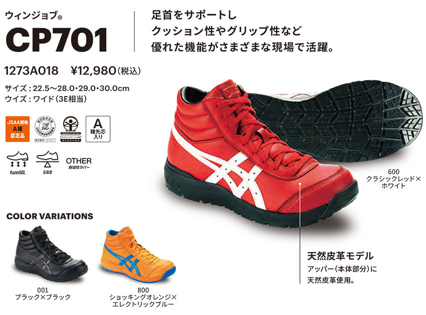 安全靴 ハイカット asics アシックス WINJOB ウィンジョブ CP701 1273A018 紐靴 JSAA規格 プロテクティブスニーカー
