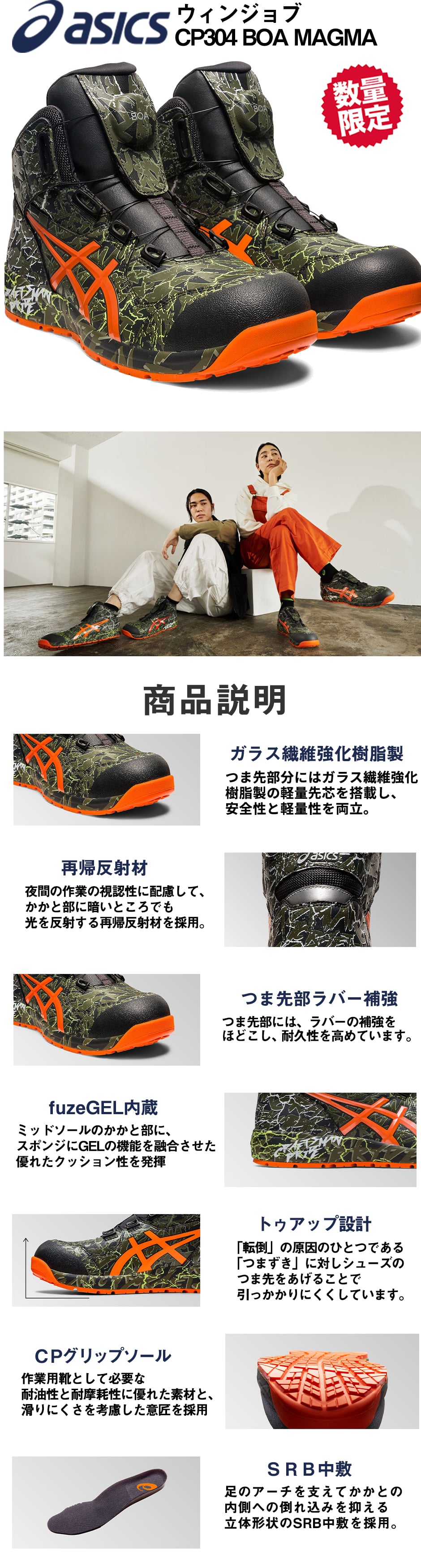 安全靴 アシックス 限定カラー ハイカット asics 安全靴 限定カラー boa 新作 ウィンジョブ マグマ WINJOB CP304 Boa MAGMA 1273A077 ダイヤル式 JSAA規格 スニーカー 耐滑性 通気性 軽量 先芯入りおしゃれ かっこいい カジュアル