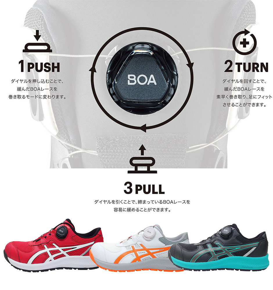 安全靴 asics アシックス WINJOB ウィンジョブ CP219 BOA 1273A092 ダイヤル式 JSAA規格 プロテクティブスニーカー サイドマウントダイヤル 耐油 耐滑 反射材 ローカット メッシュ 足への負担軽減 疲れにくい