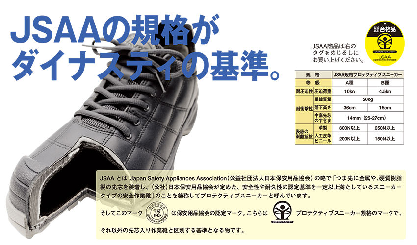 | JSAA-A、軽量樹脂製先芯、かかと衝撃吸収 |