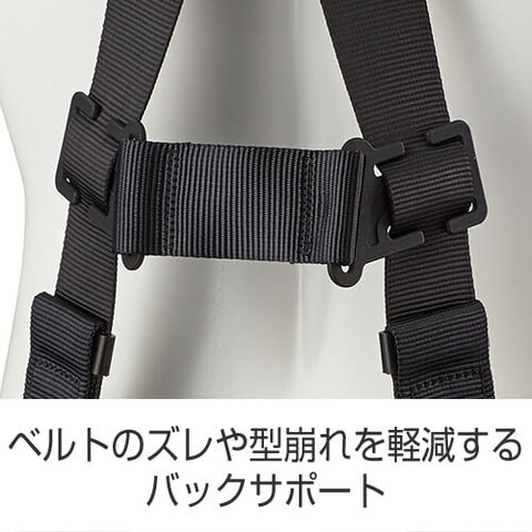 | ※労働安全衛生法の改正により、6.75m(建設業は5m)以上の高さでの作業時には墜落制止用器具(安全帯)の着用が義務化されました。 使用期限(交換時期)や買い替えの基準、廃棄基準についてメーカーの情報にしたがって正しくお使いください。 肩・腿・骨盤ベルト:幅40mm(ポリエステル) 胸ベルト:幅25mm(ナイロン) 肩バックル:スチール 胸クリップ:ワンタッチ(アルミ合金) D環:スチール 休止フック掛け(2個)、D環固定板、ベルト止め:樹脂 |