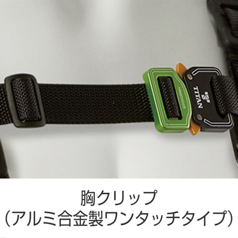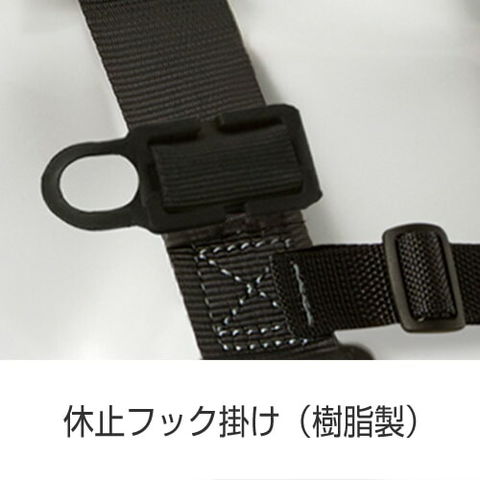 | 肩・背・腰部ベルト:幅45mm(樹脂製芯材内包ナイロン) 腹・腿部ベルト:幅45mm(ポリエステル) 胸ベルト:幅25mm(ナイロン) 肩バックル:スチール 胸クリップ:ワンタッチ(アルミ合金) D環:スチール 休止フック掛け(2個)、ベルト保持板、尻当て、D環固定板、ベルト止め:樹脂 簡易肩パッド(DP型):ポリエステル |