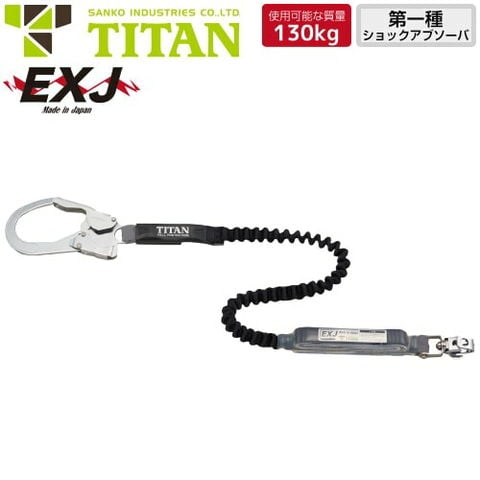安全帯 タイタン TITAN サンコー ランヤード EXJ 1丁掛け 伸縮ストラップ式ランヤード ( 第一種適合 タイプ1 ) シングルランヤード 新規格 墜落制止用器具 伸縮式 第1種ショックアブソーバ付き フルハーネス フルハーネス型用 HL-EB-130