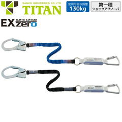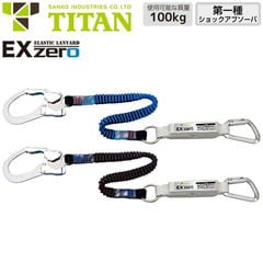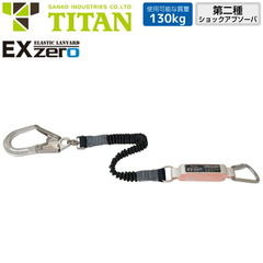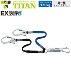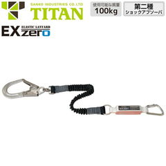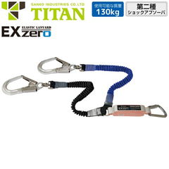 安全帯 タイタン TITAN サンコー ランヤード EX-zero 2丁掛け 伸縮ストラップ式 ( 第二種適合 タイプ2 ) ダブルランヤード 新規格 墜落制止用器具 伸縮式 第2種ショックアブソーバ付き フルハーネス フルハーネス型用 HL2-ZCW-UJ