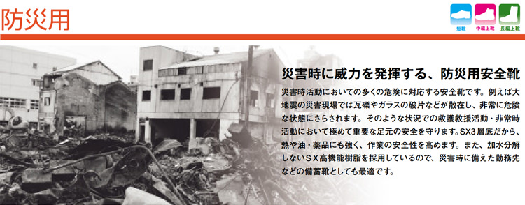 踏抜き防止板内蔵の防災用靴