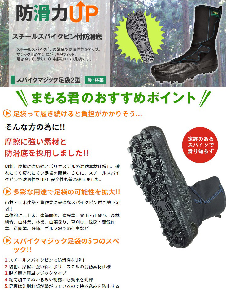 スパイクマジック足袋2型 マルゴ 丸五 地下足袋 作業用 たび タビ 地下足袋 マジックテープ メンズ レディース 耐滑性 ぬかるみ 河川工事 農作業 園芸 土木作業 山作業 山林 農林