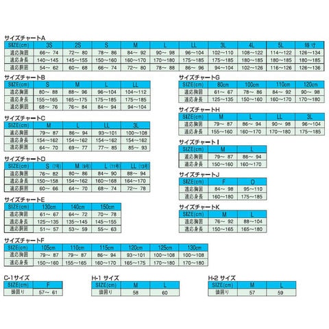 | ホワイト・ブラック以外4L・5L 有り サイズチャートA |