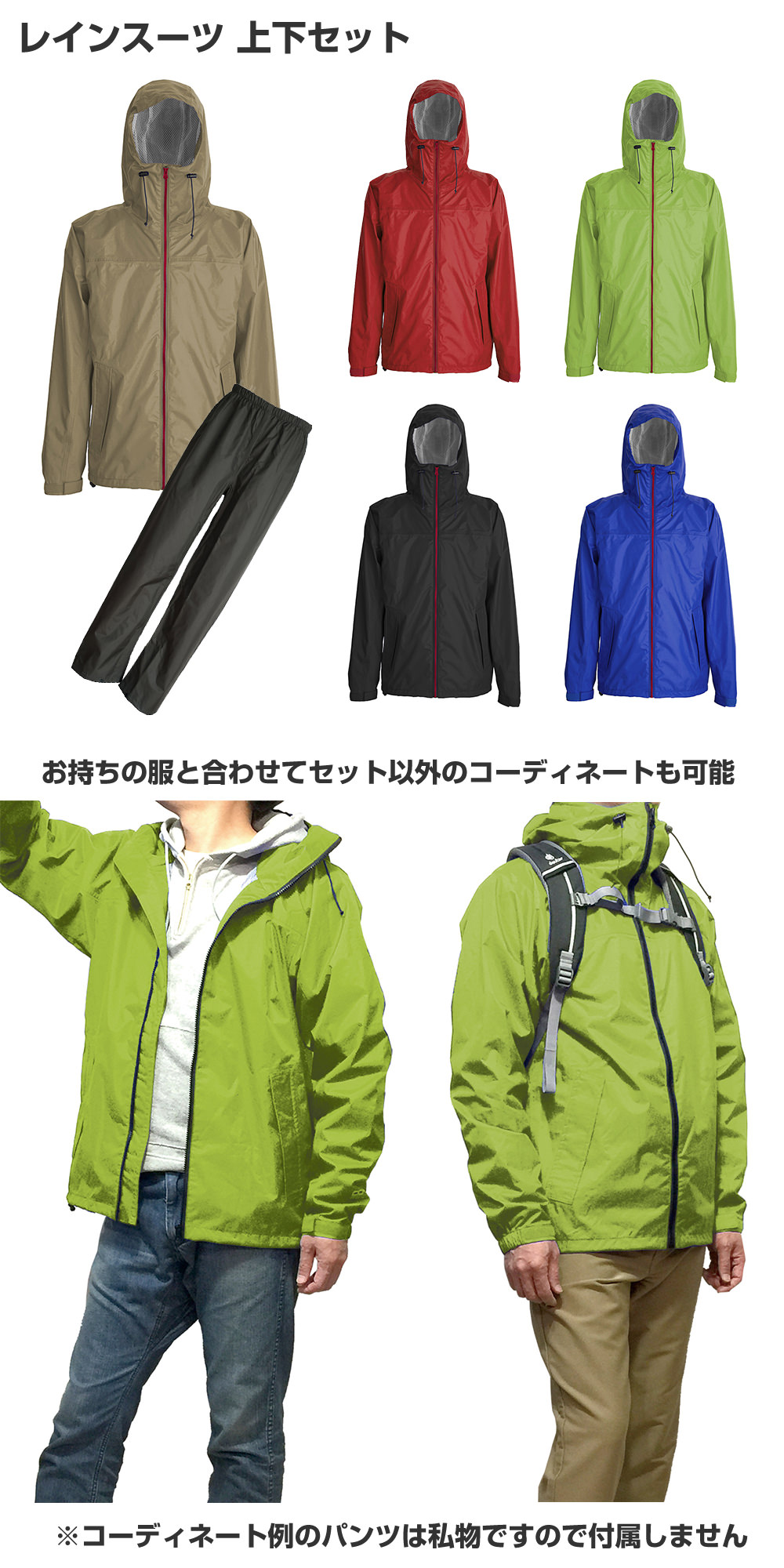 | 防水性の高いPVCラミネートを採用した動きやすいレインスーツ登場! 動きやすいクライミング3Dカットを採用 後ろはロングテールでお尻までしっかり覆います。 巻き込みフードで使用しない時は丸めて簡単に収納可能。 フードの深さは簡単に調節可能 背中には反射プリント使用で、視認性も向上 | |||||||||||||||||||||||||||||||||||||||||||||||||||||||||||||||